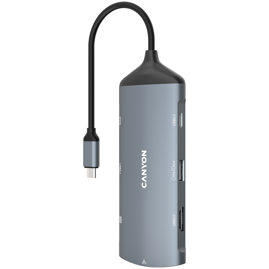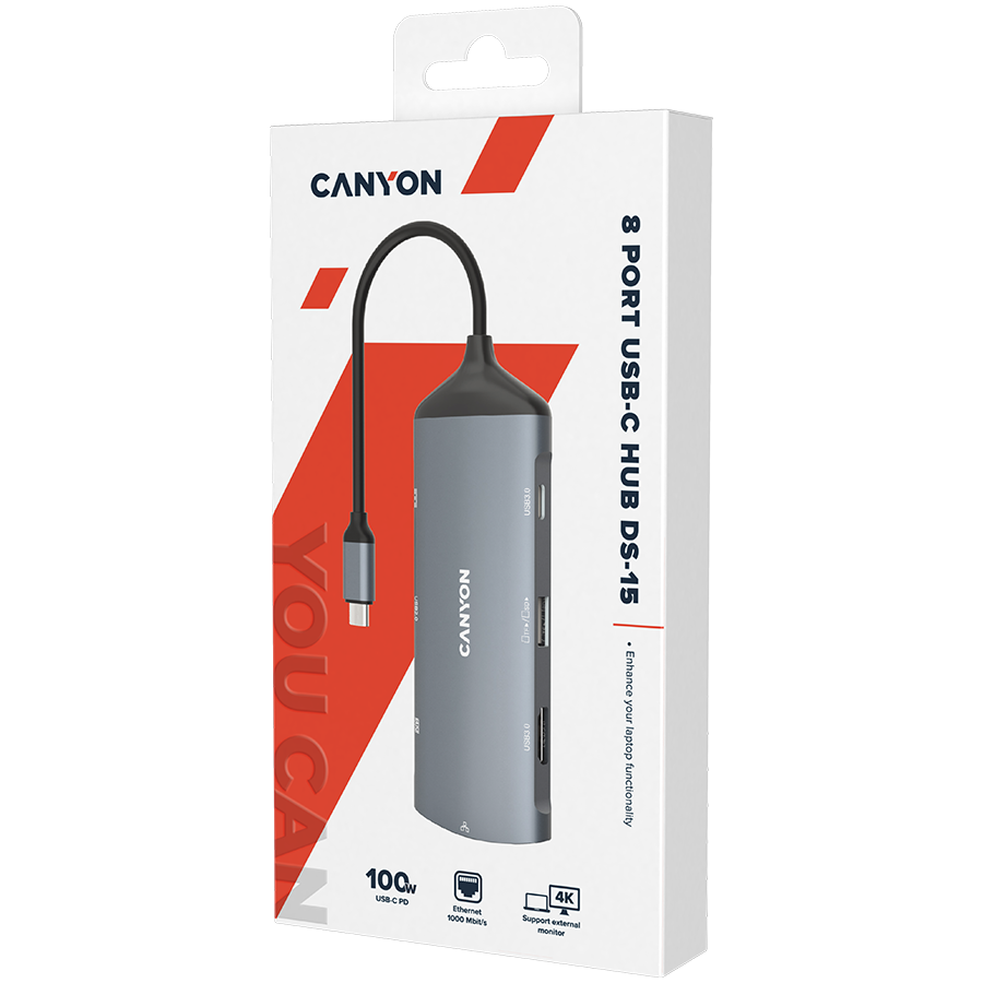 CANYON DS-15 8 in 1 hub with 1*HDMI1*Gigabit Ethernet1*USB C female:PD3.0 support max60W1*USB C male