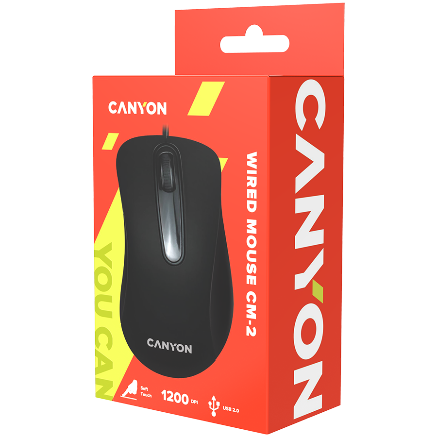 CANYON CM-2 Wired Optical Mouse with 3 buttons, 1200 DPI optical technology for precise tracking, black, cable length 1.5m, 108*65*38mm, 0.076kg