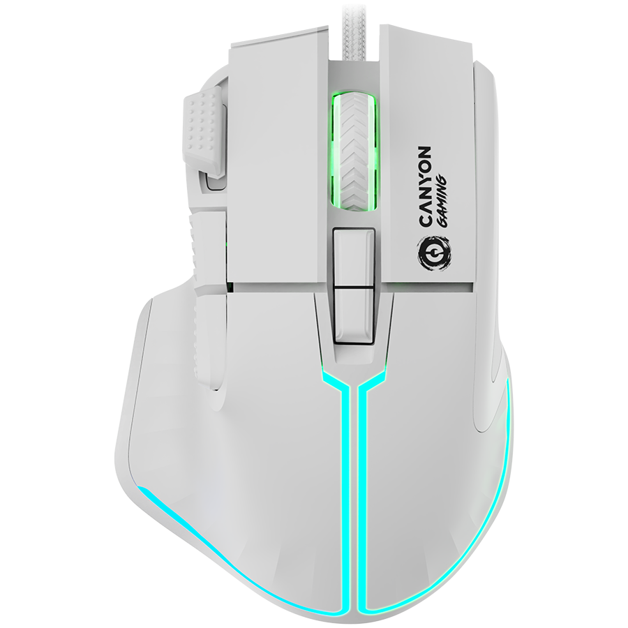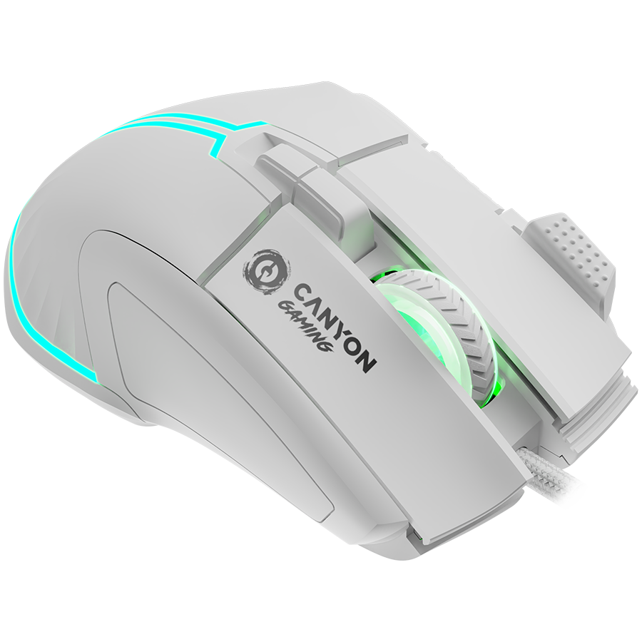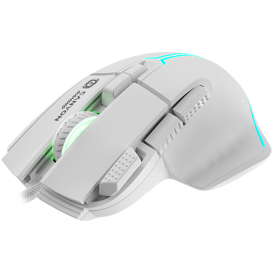 CANYON Fortnax GM-636, 9keys Gaming wired mouse,Sunplus 6662, DPI up to 20000, Huano 5million switch, RGB lighting effects, 1.65M braided cable, ABS material. size: 113*83*45mm, weight: 102g, White