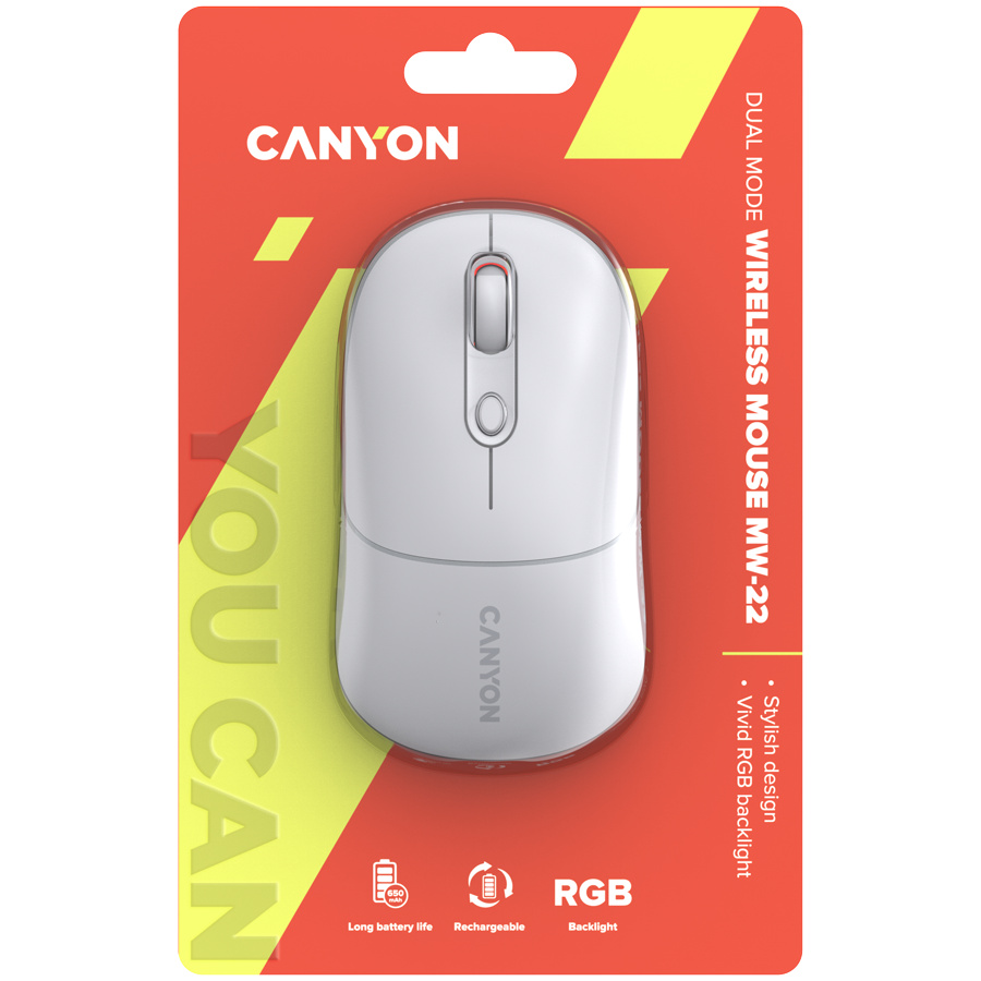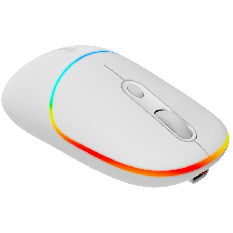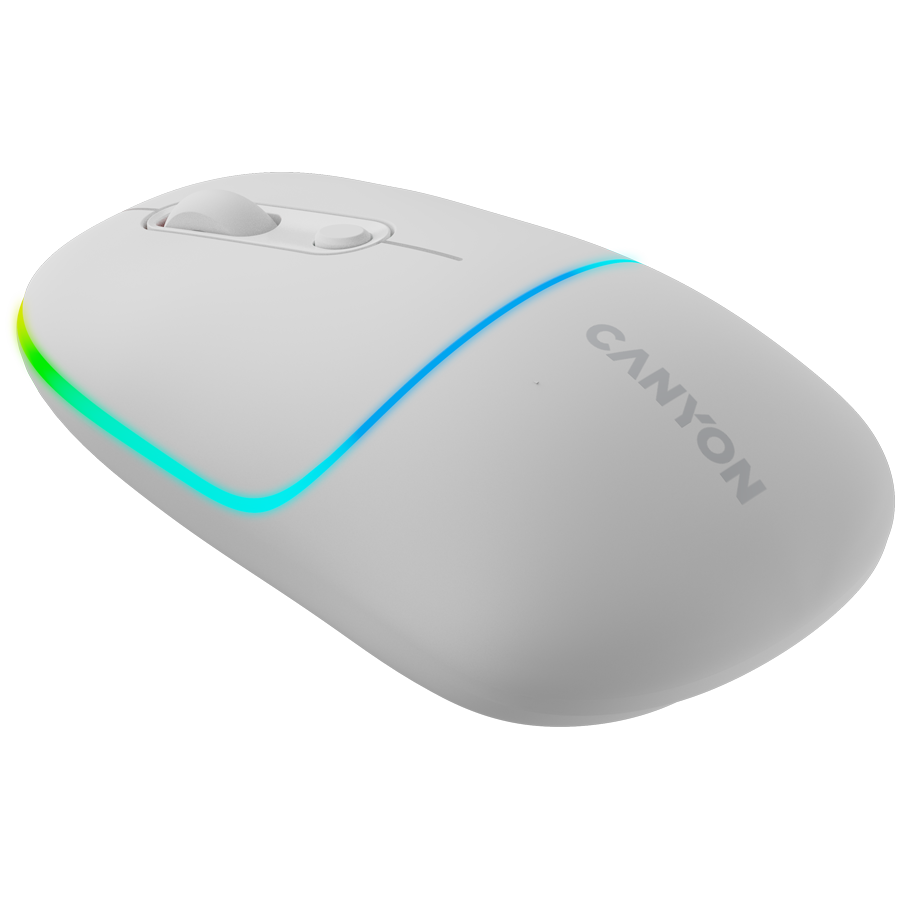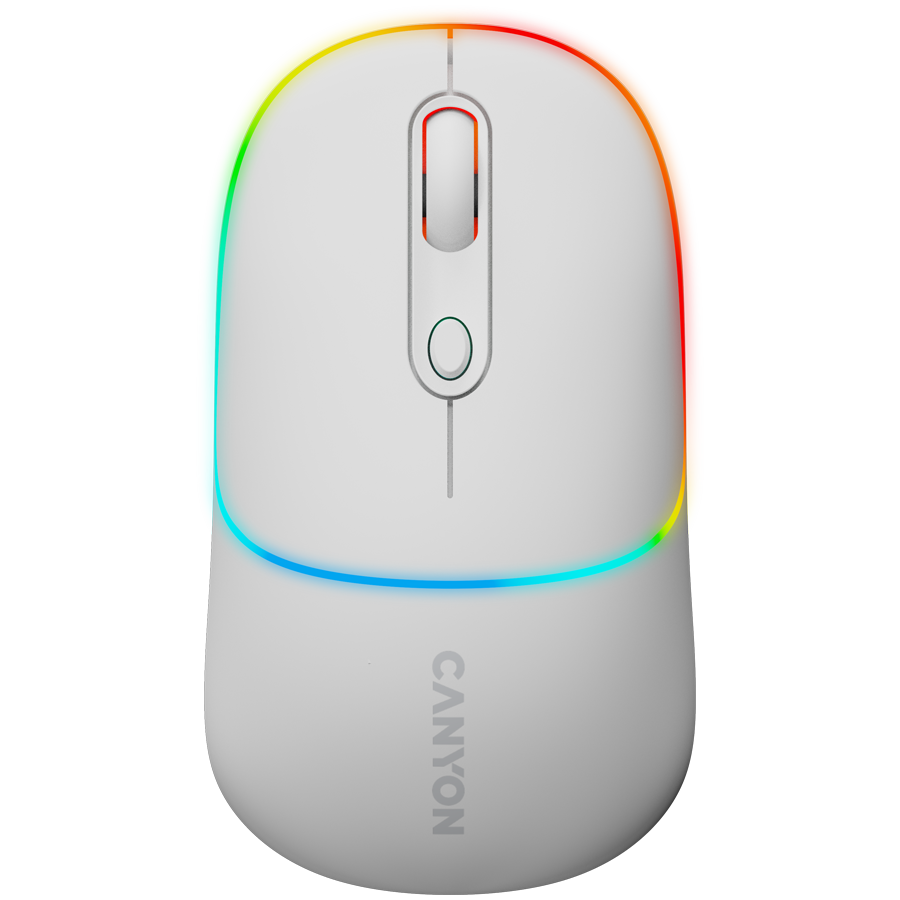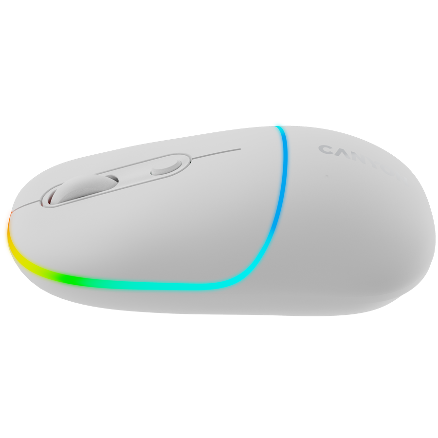 CANYON MW-22, 2 in 1 Wireless optical mouse with 6 buttons, DPI 800/1200/1600, 2 mode(BT/ 2.4GHz), 650mAh Li-poly battery,RGB backlight ,Snow white, cable length 0.8m, 110*62*34.2mm, 0.085kg