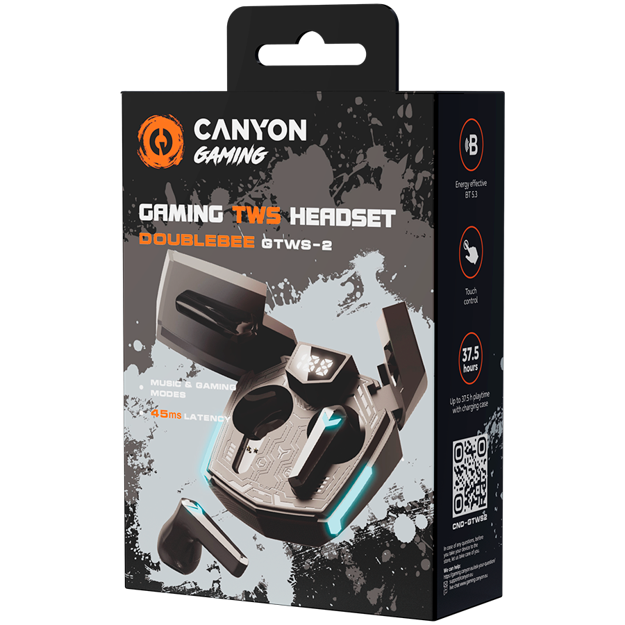 Are you a serious gamer looking for the ultimate audio experience? Look no further than this gaming headset from Canyon — DoubleBee GTWS-2. These true wireless earphones are designed specifically for gaming, providing an immersive audio experience. With a low latency of just 45ms in gaming mode, you'll never miss a beat or experience any lag. There’s also a dedicated Music mode, which ensures the best possible audio quality. The earphones use Bluetooth 5.3 for a stable and energy-efficient connection to your gaming device, allowing you to move around without worrying about losing your connection. With an impressive battery life of up to 4 hours on a single charge and up to 37.5 hours with the charging case, you'll never have to worry about running out of juice mid-game. Besides, the earbuds have a quick charge mode: from zero to full battery in just 60 minutes. It’s worth noting that the charging case has a unique design that resembles the iconic Bumblebee. Available in black, orange, and yellow, this case definitely looks fresh in the world of gray and white earbuds. Get a next-level experience with DoubleBee – the new true wireless headset from Canyon Gaming!