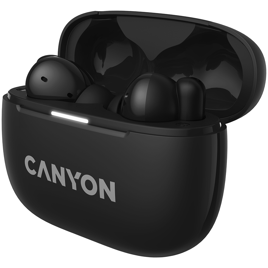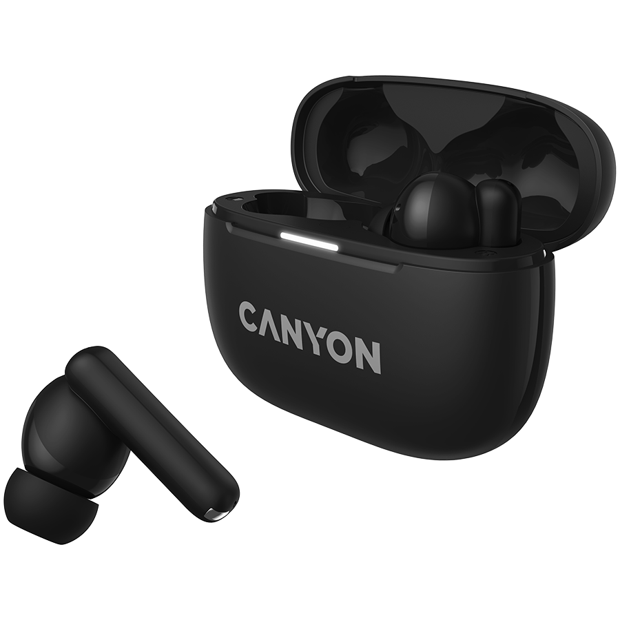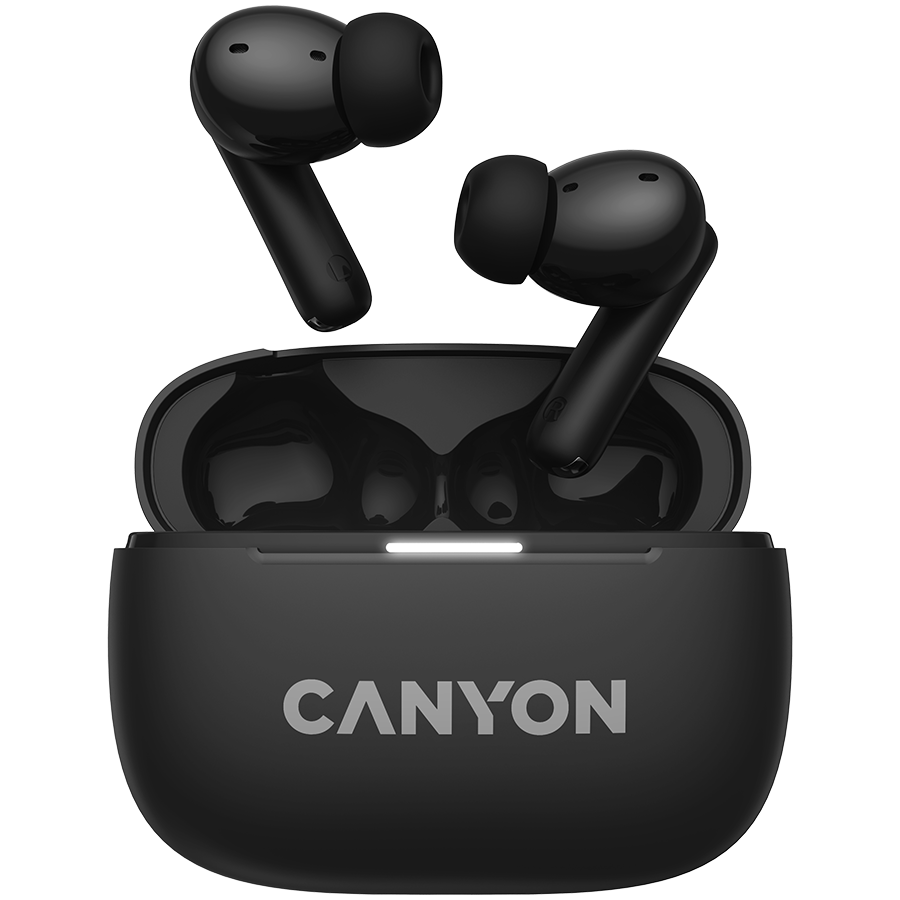 CANYON OnGo TWS-10 ANC+ENC, Bluetooth Headset, microphone, BT v5.3 BT8922F, Frequence Response:20Hz-20kHz, battery Earbud 40mAh*2+Charging case 500mAH, type-C cable length 24cm,size 63.97*47.47*26.5mm 42.5g, Black